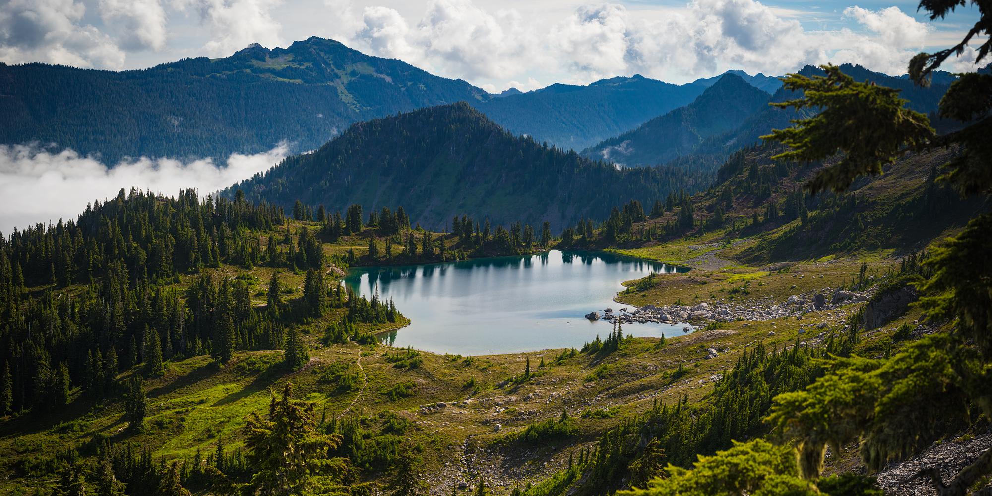 Lunch Lake while dropping into the Seven Lakes Basin. Taken along the High Divide / Seven Lakes Basin Trail in Olympic National Park.